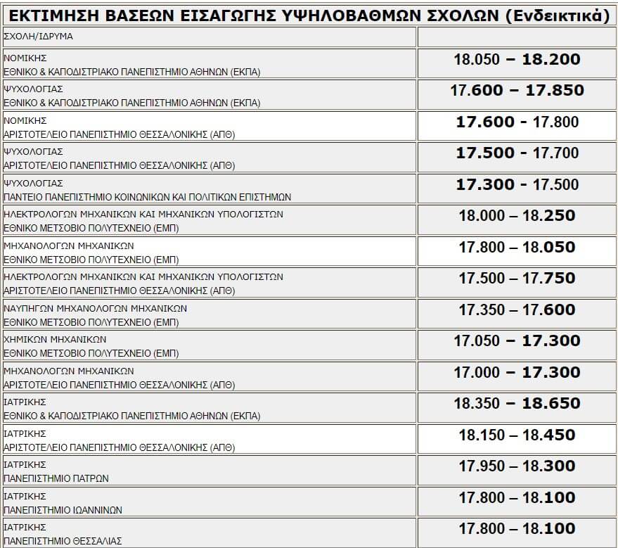 Η Νομική Αθήνας θα είναι και φέτος το πιο υψηλόβαθμο Τμήμα ενώ τη δεύτερη υψηλότερη θέση αναμένεται να διεκδικήσουν η Ψυχολογία Αθήνας και η Νομική Θεσσαλονίκης.